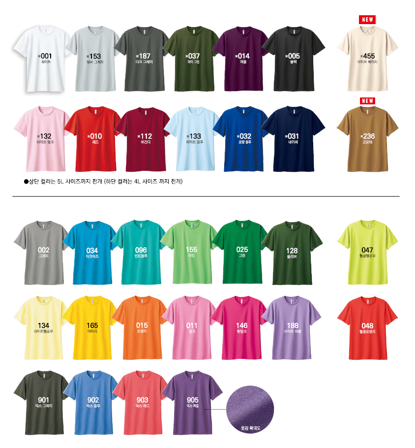 ● 188 라이트 퍼플 ● 048 형광오렌지 ● 901 믹스 그레이 ● 902 믹스 블루 ● 903 믹스 레드 ● 905 믹스 퍼플