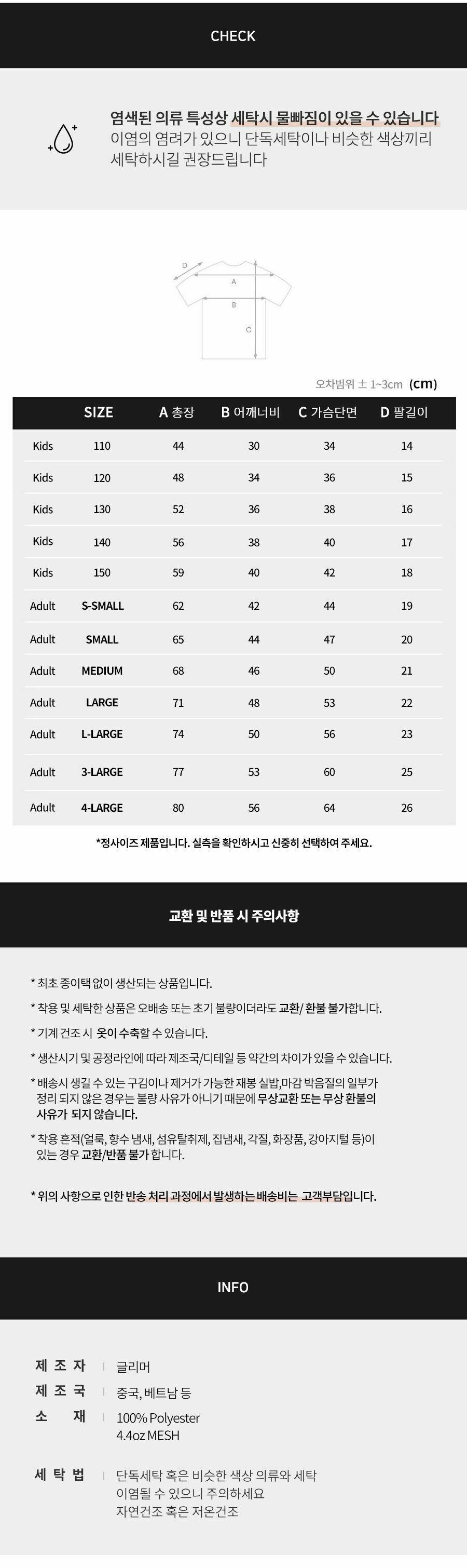 ㆍ상품 수령 후 7일이 경과, 세탁, 수선, 태그제거, 착복으로 인한 오염 등 새상품으로서의 가치가 상실된 경우 교환/반품이 불가합니다. ㆍ본사는 CJ대한통운 (편의점제외) 택배와 계약되어 있으므로 교환 운송장 번호로 쉽게 접수 가능하며, 편도 기준 2500원 외 추가운임이 발생하지 않습니다. (제주, 도서산간 제외)