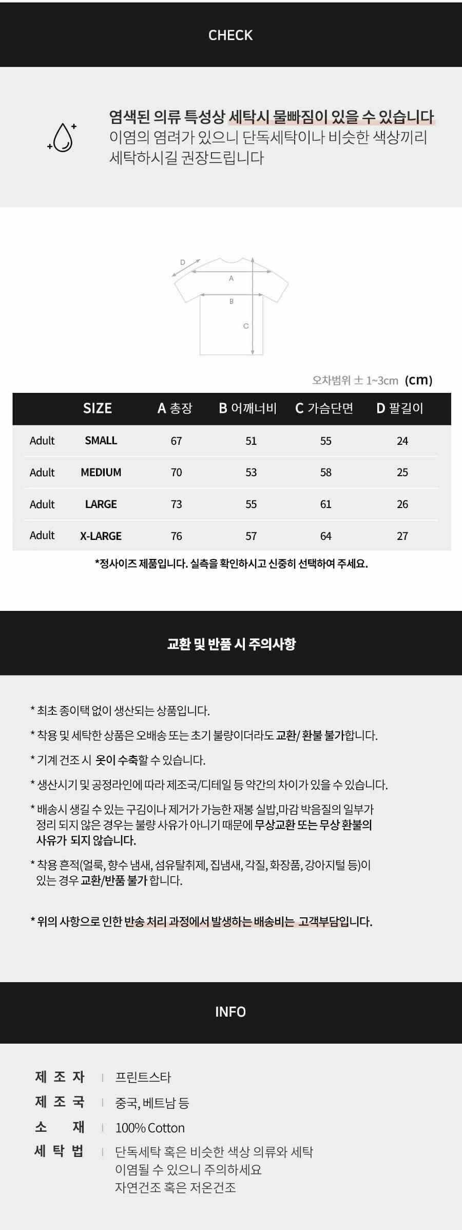 ㆍ상품 수령 후 7일이 경과, 세탁, 수선, 태그제거, 착복으로 인한 오염 등 새상품으로서의 가치가 상실된 경우 교환/반품이 불가합니다. ㆍ본사는 CJ대한통운 (편의점제외) 택배와 계약되어 있으므로 교환 운송장 번호로 쉽게 접수 가능하며, 편도 기준 2500원 외 추가운임이 발생하지 않습니다. (제주, 도서산간 제외)