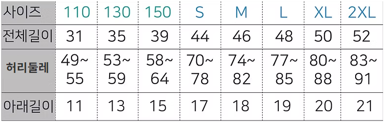 사이즈표