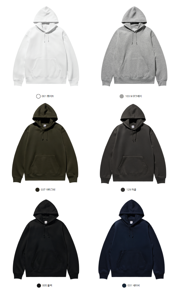 기모원단이며 세미오버핏의 후드티셔츠입니다.